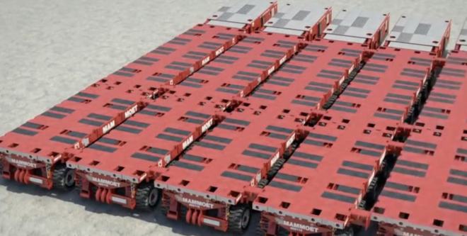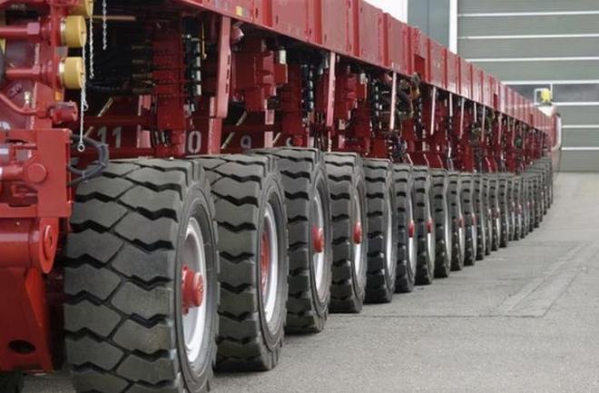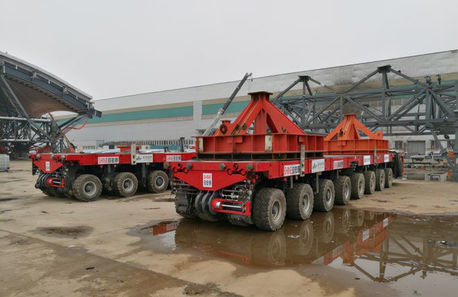 从结构来看杏彩体育,SMPT就像个儿童积木,按照一个轴标准载重是30吨上下的标准,那么4轴载重就是120吨,6轴载重就是180吨等等,其载重可以根据需要自由叠加,所以运载能力非常强,在很多场合都能看到它的身影,如港珠澳大桥工程中,中国就动用了这样的超级运输车来运送沉管隧道,但若是只能用来拉这种大家伙,未免有些浪费了,所以在设计之初,专家们采用模块化设计方法,即生产了多个同样的小单元车,只需在要用时进行简单拼装就可以,由此一来,SMPT平板车的应用场景变得更多,显得非常灵活。