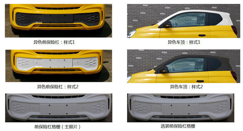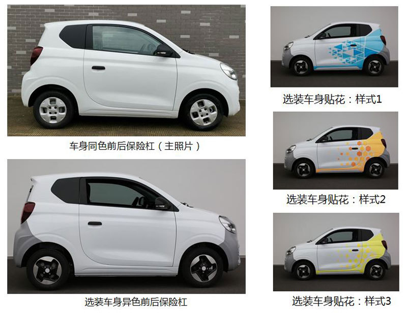在车身尺寸方面,新车的长宽高分别为2980/1496/1637mm,轴距为1960mm,整备质量为743kg。配置方面,新车将根据不同车型提供前大灯造型、多种钢圈装饰罩、车身同色前保上饰板、车身同色后背门饰板、车身同色外后视镜、车门装饰膜、黑色车顶、黑色A柱外饰板、黑色顶边梁外饰板、黑色后立柱外饰板、黑色后背门、后排分体式座椅(可翻转)、后排整体式座椅(可翻转)等多种配置。