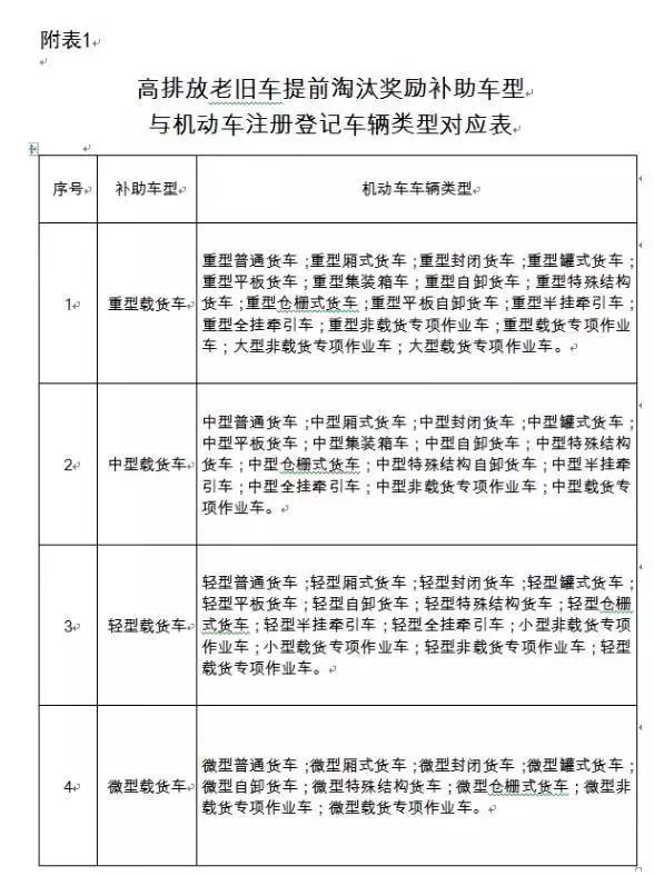 车辆类型以公安交管部门登记数据为准,并参照附表《高排放老旧车提前淘汰奖励补助车型与机动车注册登记车辆类型对应表》执行。