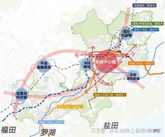 在深圳“十四五”规划中,将龙岗区未来的发展定位为深圳城市东部中心,“一轴两带三通廊”②规划建设,规划龙中核心区由双龙沿16号线横轴发展,开启龙岗新地铁横轴线发展新动力,推动龙中居住核心板块外拓发展。本项目处于“龙岗中心城-宝龙-坪山东部中心中轴城市景观带”,重启龙岗高品质居住时代,即享城市发展利好。