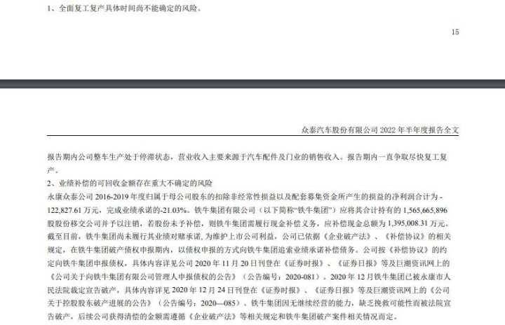 在8月份披露了半年报中,ST众泰透露,近两年受资金短缺的影响,公司汽车整车业务处于停滞状态,2021年底,公司完成了重整,今年上半年公司全力以赴进行了复工复产的工作。公司表示,上半年,公司召开了多次复产专题会议,讨论并解决复工复产中存在的问题。目前公司已经完成某款车型大部分供应商定点工作,与关键供应商已经签署了供货合同、开发协议等,复产工作中的文件资料准备工作、零部件搭载实验已基本完成。